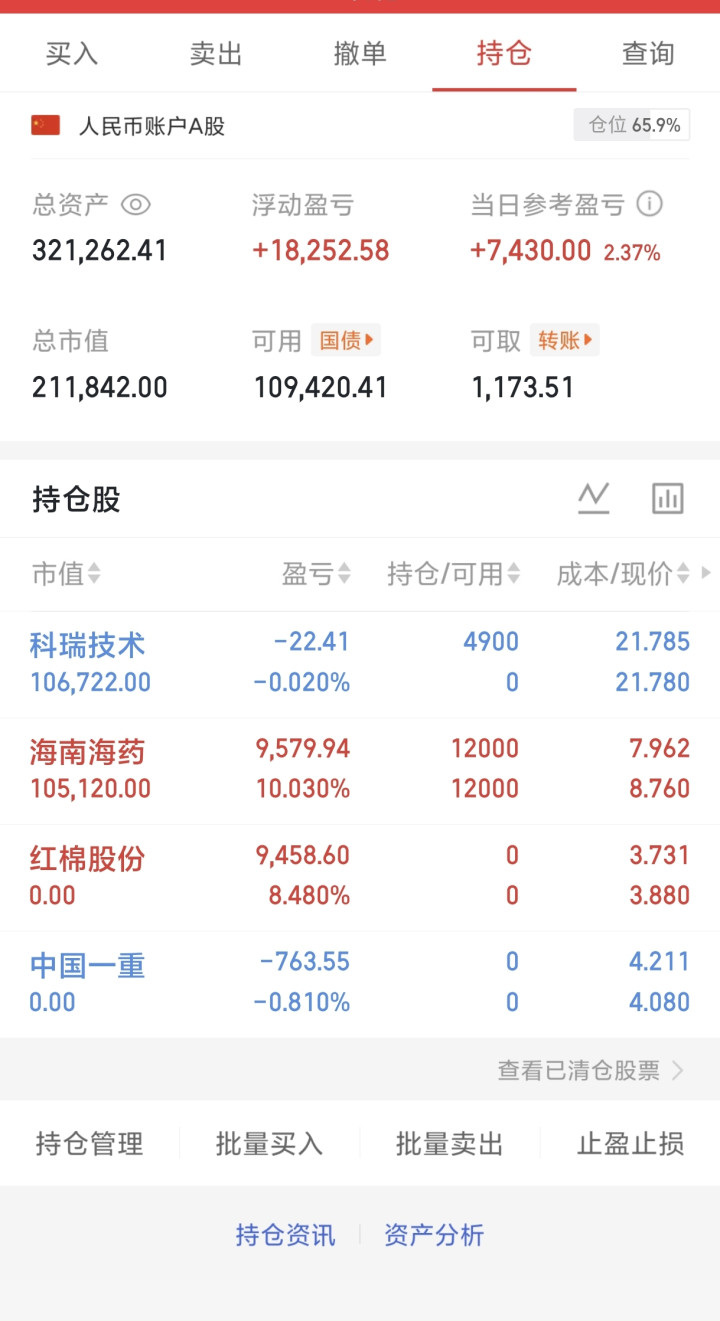 海南海药,这个票,量基本还是锁住的,再拿一天。比较可惜的是,这个票不是个独立票,它的表现严重受制于海南这个板块的表现。如果这个票是个独立的票,单从这个结构做决策,今天板上还可以买。可惜,它不是个独立票,所以板上我也没有再加仓。